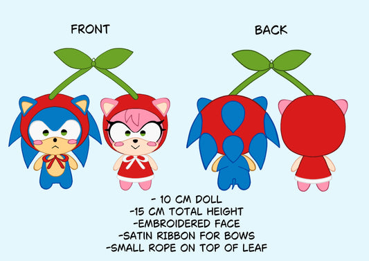 Pre Order [sample production] Sonic x Amy cherry plush (do not separate!)