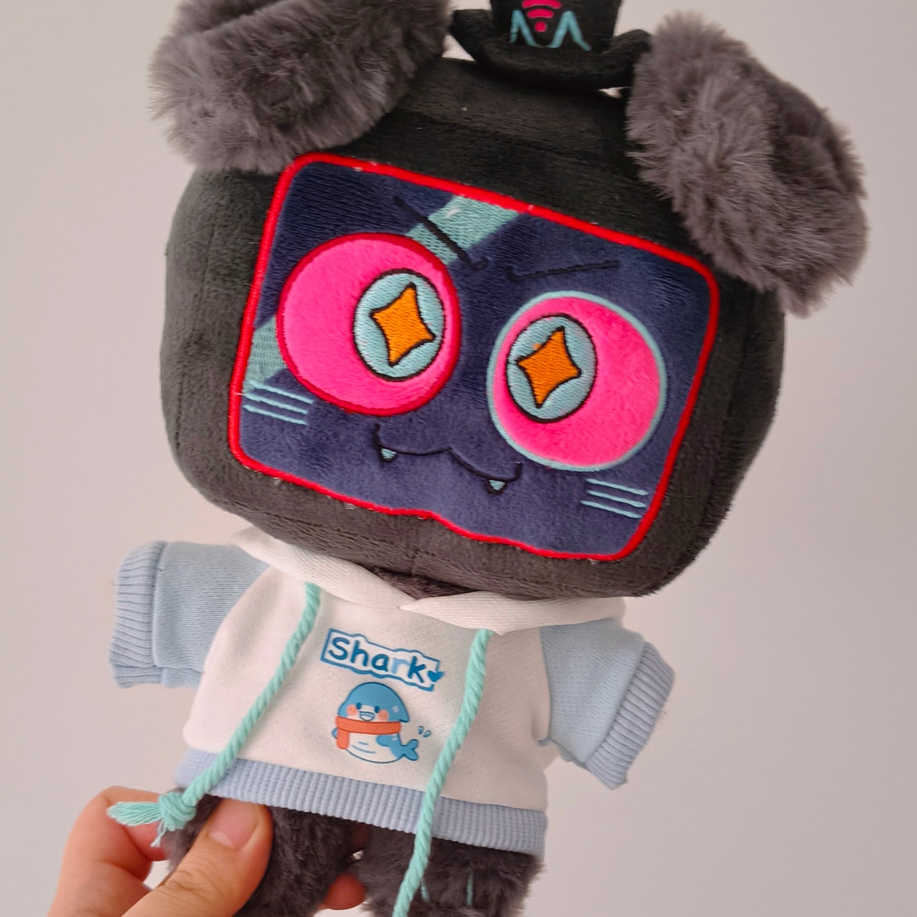 The body and ears are plush and soft. It features non-removable dog ears and a shark tail.
