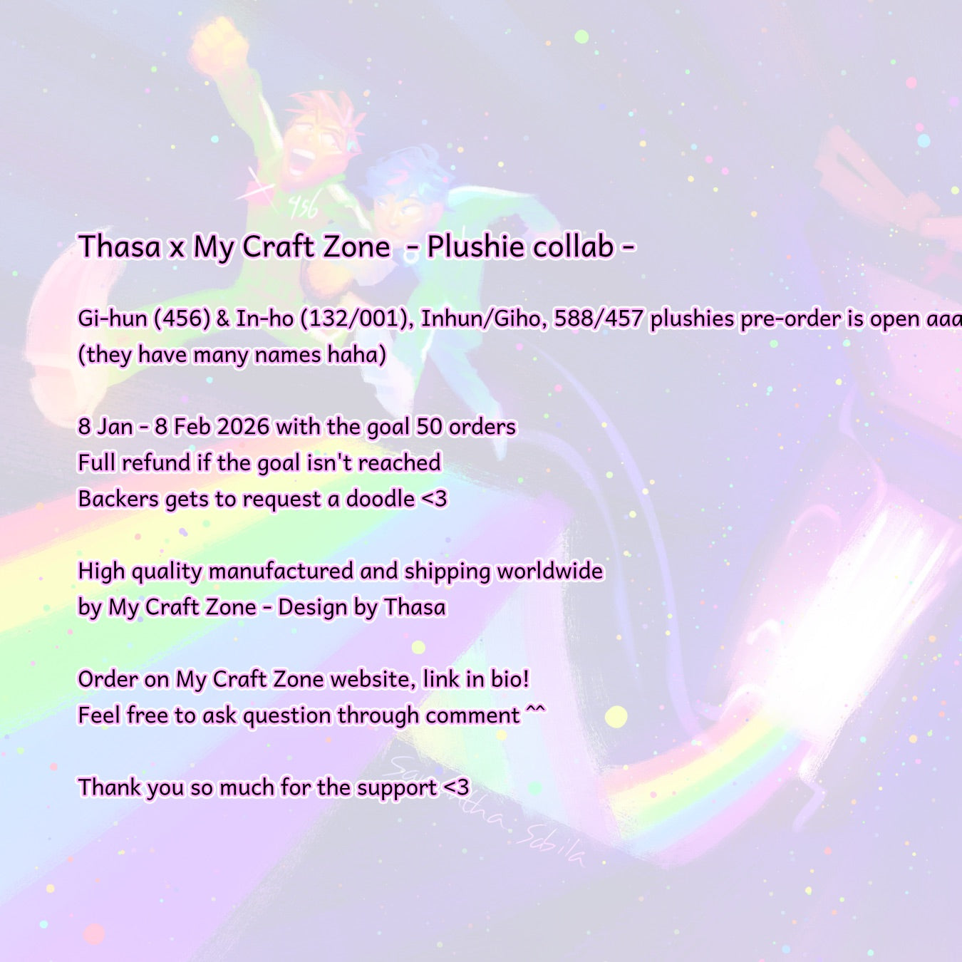 Thank you so much for making the plushies come to life!! <3 Backer gets to request a doodle, through email